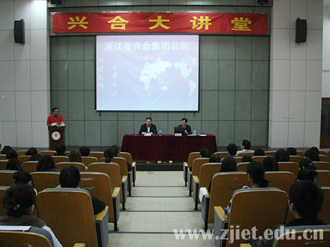 11月2日下午,由学院团委和兴合学院共同主办的“兴合大讲堂”在图书馆报告厅正式开讲。担任首席主讲的是浙江兴合集团公司副总裁、兴合学院理事会理事长金津松先生。学院党委副书记、兴合学院院长周文根和学院师生代表近300人参加了报告会。