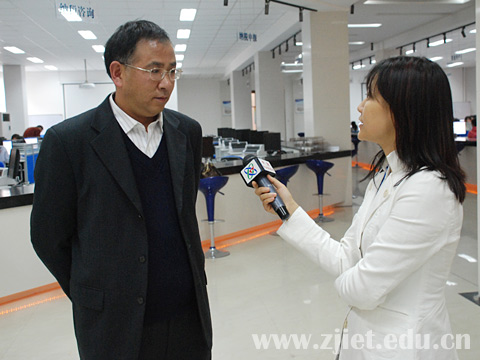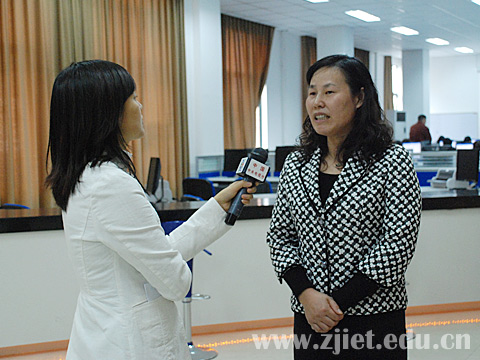 11月8日下午,中央电视台新闻中心记者张芸,在省教育厅学生处处长丁松泉陪同下对我院毕业生就业工作做了专题采访。张记者走访了经管类实训基地以及我院正在举行的“浙江省农资集团专场招聘会”现场,并采访了分管招生就业工作的院领导、招生就业处处长、部分用人单位和毕业生等。学院党委书记童学敏、院长助理蒋丽君、学生处处长许兴苗、招生就业处处长张瑶祥等陪同采访。