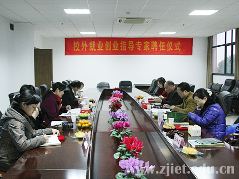 12月14日下午,在行政楼三楼会议室举行了校外就业创业指导专家聘任仪式。会议由院长助理蒋丽君主持。此次聘任的7位校外就业创业指导专家是来自教育行政部门和高校长期从事就业创业指导工作的资深人士,他们分别是省高校毕业生就业指导服务中心正处级调研员陈龙春,省高校毕业生就业指导服务中心就业服务部主任高先树,浙江工商大学招生与就业处处长孙鹰,杭州师范大学发展与服务部执行部长、就业指导与服务中心主任张伟波,浙江理工大学招生就业处处长徐颖云,杭州电子科技大学招生就业处副处长、就业指导与服务中心主任袁秀川,温州大学招生就业处副处长孙广福。