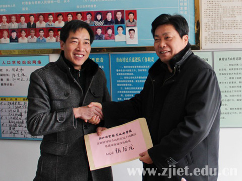 在香山村党支部、村委会负责人的陪同下,童书记一行还走访了香山村下山搬迁户,代表学院向香山村农民下山搬迁基础设施建设工程捐赠5万元人民币,并向该村困难户送去了慰问金。