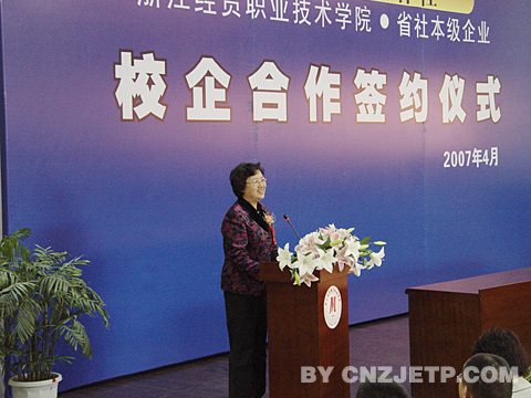 学院党委书记童学敏在仪式上致辞。他指出,近年来,省供销社持续保持良好的发展势头,发展前景广阔。省兴合集团公司和浙江农资、浙江特产、浙江新大、浙江茶叶四大公司也发展迅速。这为加强学院与省社本级企业的紧密型合作奠定了坚实基础。