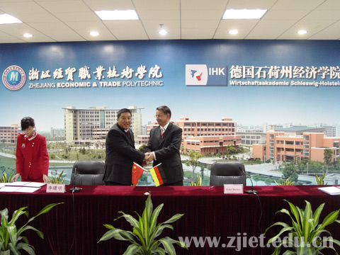 2007年10月30日,德国石荷州经济学院董事长Dr. Detlef Reeker与德国石荷州成教协会前副会长Prof. Werner Hutterer来我院访问。就我院企业管理专业(德语特色班)开展中德合作高等专科教育项目正式签署合作协议,并聘请Prof. Werner Hutterer为我院德语中心副主任。省供销社副主任瞿建,省教育厅领导,学院领导以及企业管理专业(德语特色班)首批21名学生参加了签约仪式。