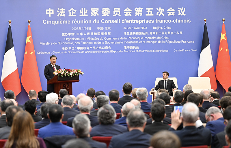 4月6日下午,国家主席习近平在北京同法国总统马克龙共同出席中法企业家委员会第五次会议闭幕式并致辞。