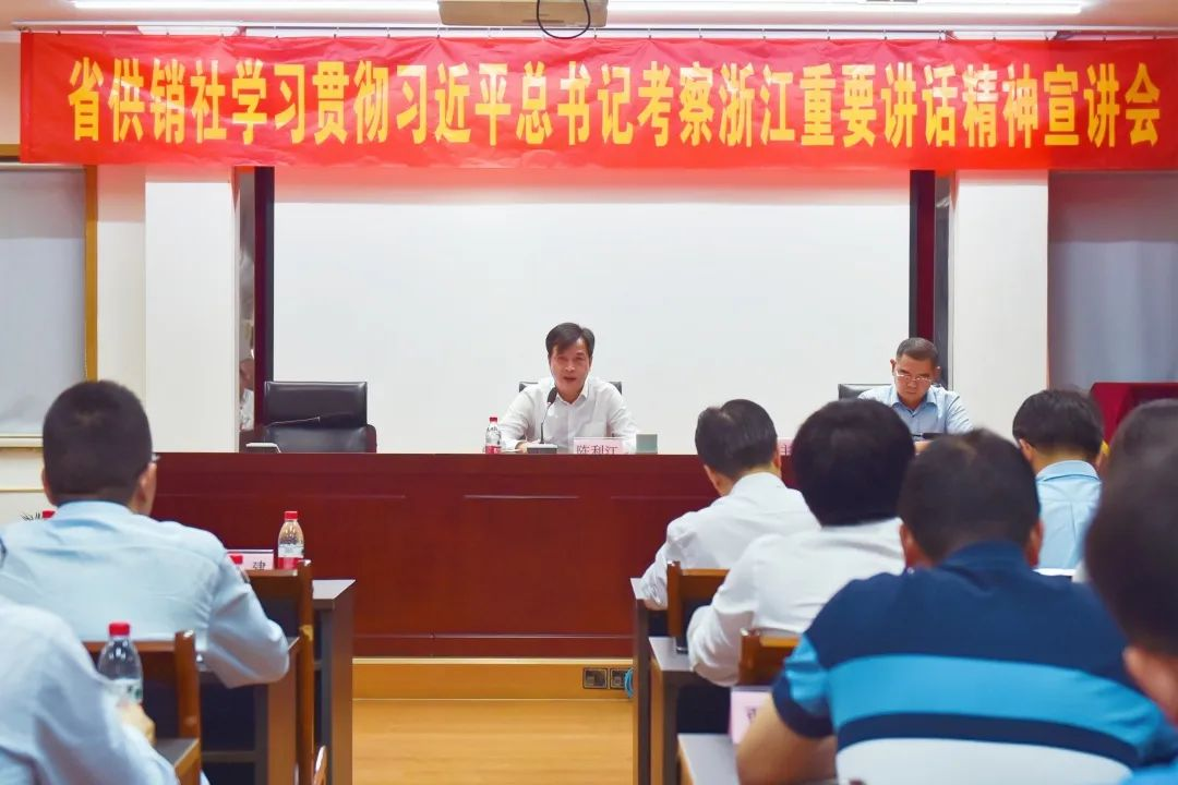 陈利江要求,学习宣传贯彻习近平总书记考察浙江重要讲话精神作为今后一个时期的首要政治任务。要全面学习领会,做到学深悟透、融会贯通。坚持把习近平总书记考察浙江重要讲话精神作为“第一议题”,各级领导班子要带头深学细悟,把蕴含其中的立场观点方法学出来、把握准、运用好。要广泛宣传教育,做到全面覆盖、长期落实。加大宣传力度,有序组织党员干部开展“循迹溯源学思想促践行”活动,实地感悟真理力量和实践伟力。要深入调查研究,做到聚焦问题、求真务实。深化完善“大走访大调研大服务大解题”活动长效机制,聚焦改革发展的深层次关键性问题和农民群众急难愁盼的问题深入调查研究,制定出台更具针对性系统性整体性解决方案。要坚决贯彻执行,做到立说立行、见行见效。把供销社工作融入全省中心大局,锚定三个“一号工程”和“十项重大工程”,奋发有为、实干争先,提前谋篇布局明年工作思路。扎实推进深化农村“三位一体”改革和社有经济稳进提质,为奋力谱写中国式现代化浙江新篇章贡献更多供销力量!