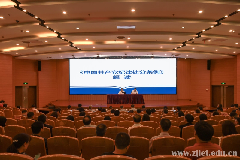 5月16日,学校举办《中国共产党纪律处分条例》(以下简称《条例》)专题辅导报告会,邀请省纪委省监委驻省经信厅纪检监察组组长郑灵仙同志作《条例》专题辅导。学校领导班子、全体中层干部、党总支委员、党支部书记以及机关第一党总支全体党员160余人参加报告会。