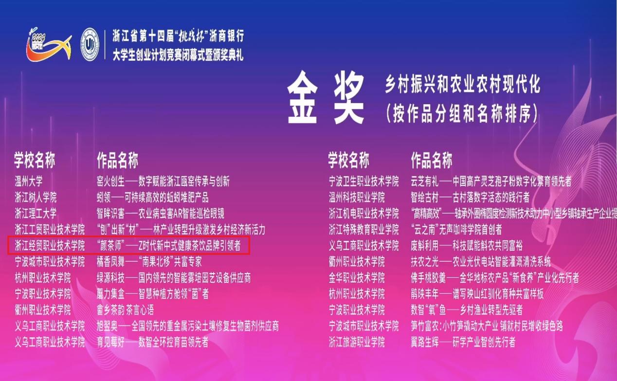 图:我校由合作经济学院韩继红等老师指导的《“颜茶师”——Z时代新中式健康茶饮品牌引领者》项目团队斩获金奖